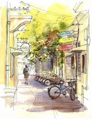 外国の路地 F2サイズ | リビングにアートを!インテリアに合う絵画の通販サイト|酒井ゆり菜の水彩画オンラインショップ