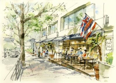 星ヶ丘テラスのカフェ F4サイズ | リビングにアートを!インテリアに合う絵画の通販サイト|酒井ゆり菜の水彩画オンラインショップ
