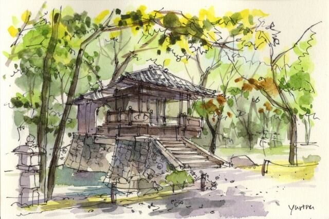 揚輝荘白雲橋 はがきサイズ | リビングにアートを!インテリアに合う絵画の通販サイト|酒井ゆり菜の水彩画オンラインショップ
